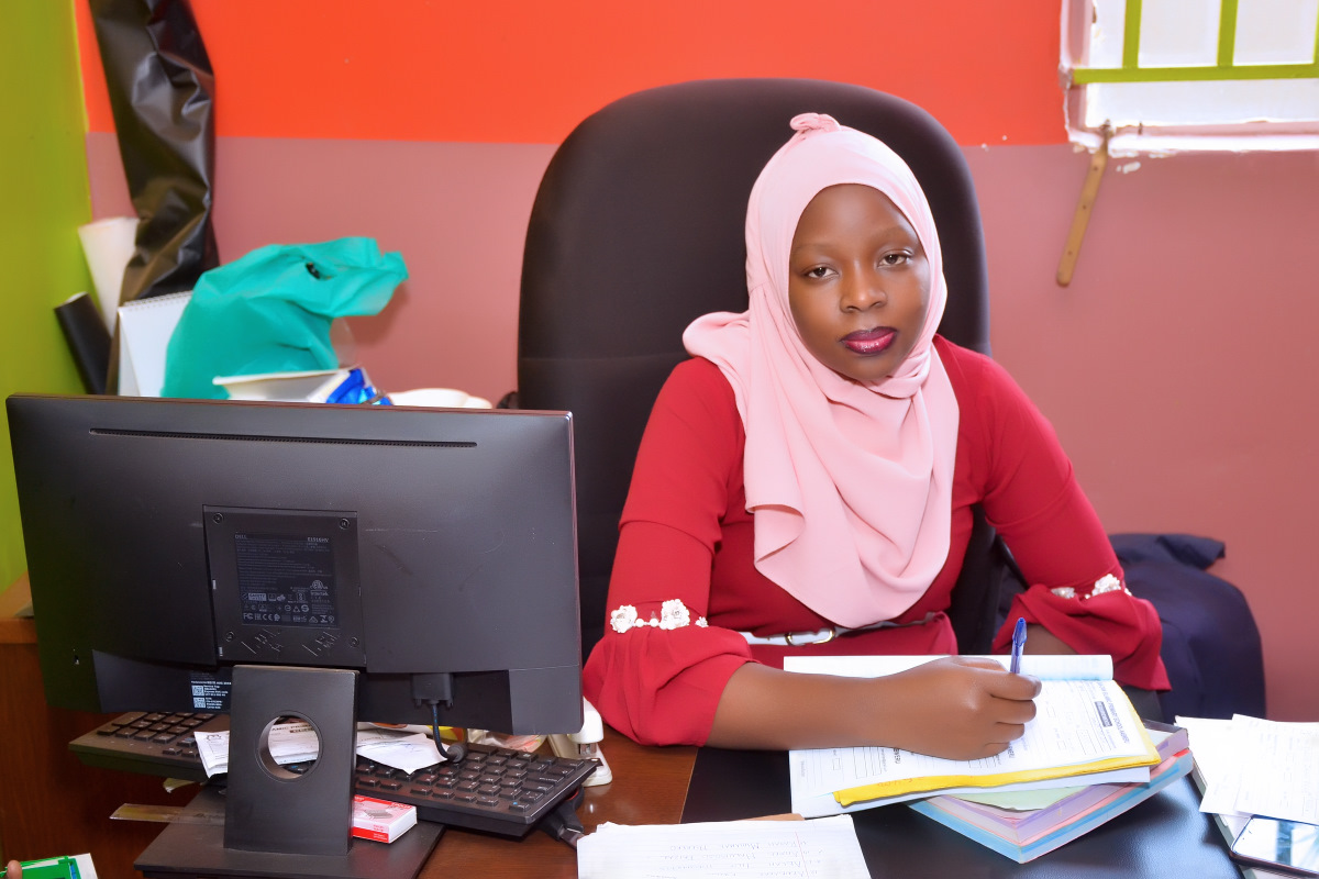 Headteacher Nursery section Mrs. Nakitto Hanifa Kibira at her desk